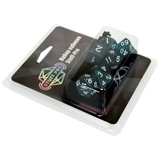 Наборы кубиков для ролевых игр решают проблему покупки необходимых дайсов. В наборе содержатся семь кубиков: D4, D6, D8, D10, D10%, D12 и D20. Поставляются кубики в комплекте с бархатным мешочком для хранения, который также удобно брать с собой на игру, ведь он легко помещается в карман.