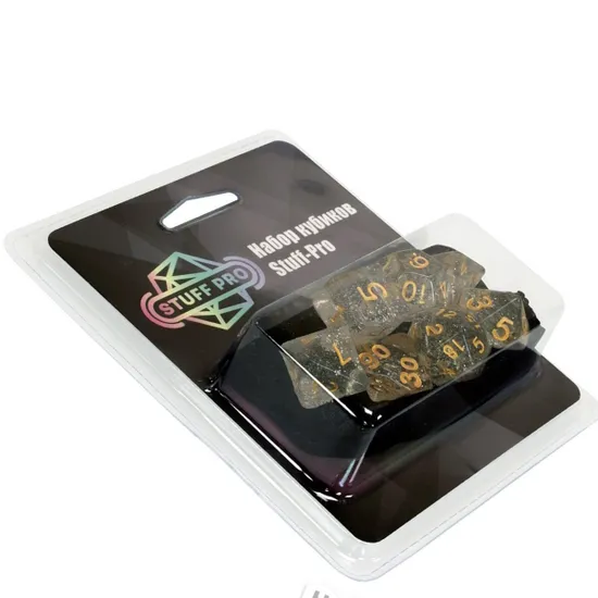 Наборы кубиков для ролевых игр решают проблему покупки необходимых дайсов. В наборе содержатся семь кубиков: D4, D6, D8, D10, D10%, D12 и D20. Поставляются кубики в комплекте с бархатным мешочком для хранения, который также удобно брать с собой на игру, ведь он легко помещается в карман.