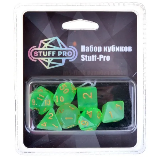 Наборы кубиков для ролевых игр решают проблему покупки необходимых дайсов. В наборе содержатся семь кубиков: D4, D6, D8, D10, D10%, D12 и D20. Поставляются кубики в комплекте с бархатным мешочком для хранения, который также удобно брать с собой на игру, ведь он легко помещается в карман.