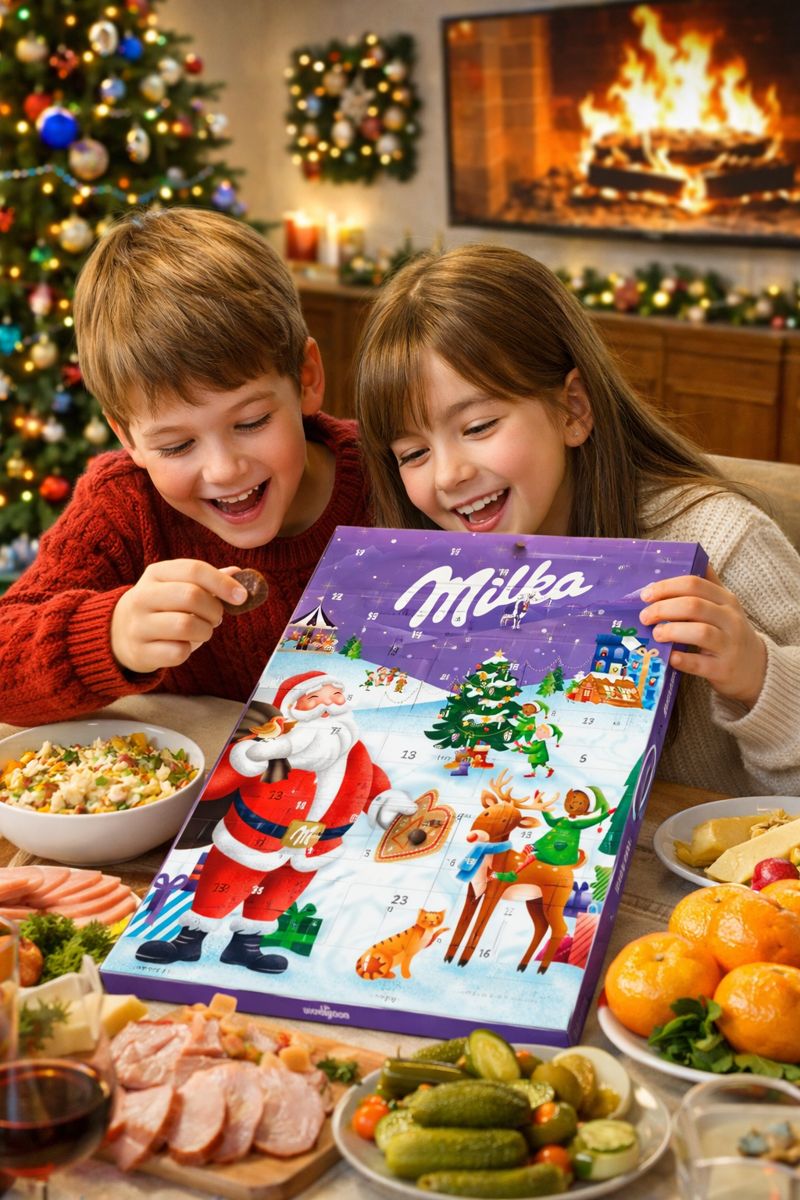 Milka Advent Calendar 90 г это новогодний адвент-календарь с шоколадом и конфетами Milka, рассчитанный на 24 дня ожидания праздника. Каждый день открываешь новое окошко и получаешь маленькую сладкую награду: отличный формат для детей, семьи, коллег и всех, кто любит создавать настроение из мелочей.