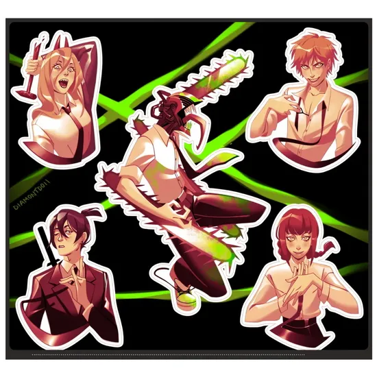 Наклейки сделаны из винила и обладают свойствами этого материала. За счет гибкости их легко клеить. Они не рвутся, не стираются, не боятся влаги и не выгорают на солнце. Будут радовать вас годами, пока не наскучат. Как придёт пора снимать – удалятся без следов. В наборе 5 стикеров с персонажами манги и аниме-сериала «Человек-бензопила». Резка по контуру.