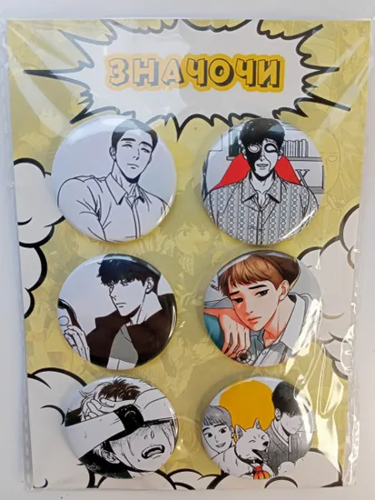 Набор из шести закатных значков (Значочи) с персонажами BJ Alex. Диаметр одного значка - 38 мм. Изображения яркие и сочные. С обратной стороны значка крепление в виде булавки.