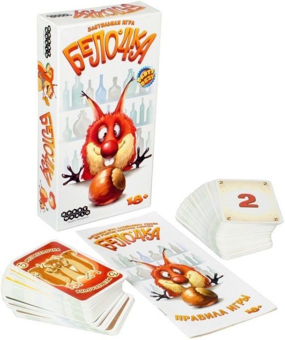 "Бело4ка" - карточная игра на скорость реакции и внимательность. Она отлично подойдет для взрослых вечеринок с употреблением спиртного*, но и без алкоголя в нее можно сыграть на ура. Хлопайте руками по картам, следите за мельтешением разноцветных белочек и постарайтесь не уклюкаться до зеленых чертиков в глазах.