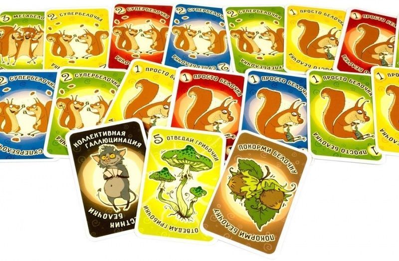Ну вот и белочка пришла... Что с нею делать - на решение этого философского вопроса вы потратите немало партий. Можно прикормить ее орешками, чтобы забрать на руку. Или угостить грибочками, чтобы белочка ушла к другому игроку. А можно оставить как есть - и ловить завистливые взгляды соперников. Ведь в этой игре удовольствие от поражения иногда даже больше, чем от победы!