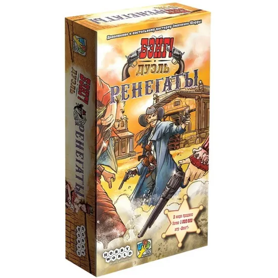 Бэнг! Дуэль: Ренегаты добавляет в игру новую группу стрелков – отъявленных головорезов – ренегатов. При игре вдвоём, они могут выступать как на стороне служителей закона, так и на стороне бандитов. А новые режимы дополнения позволяют расширить игру до трёх участников и сделать ренегатов отдельной группировкой, преследующей личные цели. Противостоять же новым стрелкам поможет оружие на новых картах ресурсов. Ещё никогда мексиканская дуэль не была такой жаркой!