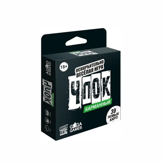 Самый маленький представитель популярной серии — дерзкий Карманный ЧПОК! Настольная проверка на пошлость, разврат и словообразование с щепоткой чёрного юмора. Несколько режимов игры и 39 новых карт с острыми и смешными темами ждут смелых фантазёров и разудалых пошляков без страха и упрека.