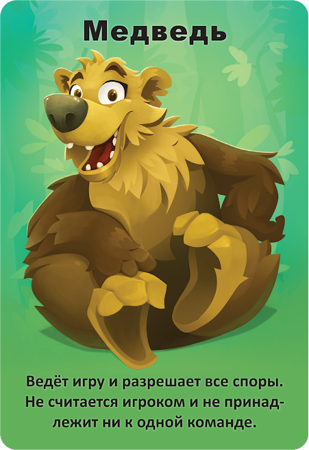 - В роли ведущего выступает медведь, который следит за игрой, но не принимает в ней непосредственное участие.