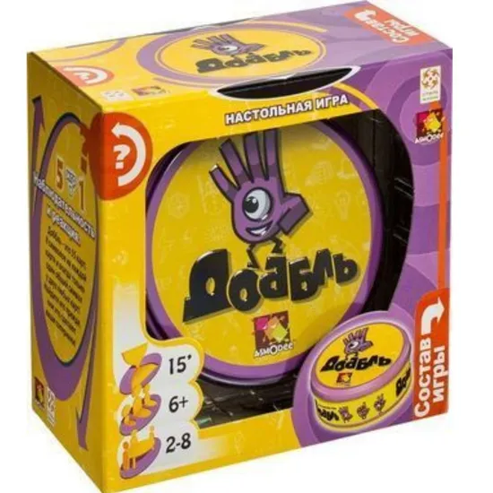Компактная круглая коробочка содержит круглые карты с множеством картинок: это могут быть животные, растения, символы, надписи, смайлики... Каждая карта уникальна, но на каждой паре карт имеется одна (и только одна) общая для этих карт картинка. Именно на поиске этого совпадения и построена настольная игра Доббль (Dobble или Spot It!).