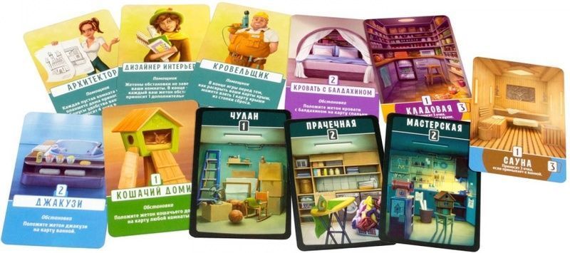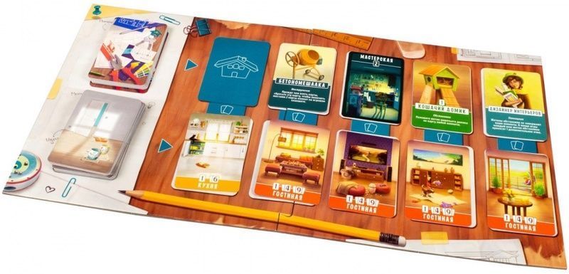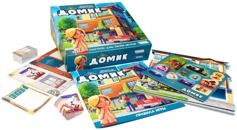 Настольная игра «Домик» — забавная и милая настольная игра для 2-4 игроков на тему строительства своего дома. Выбирайте карты инструментов, мебели комнат и следите, чтобы самое лучшее не досталось соперникам.