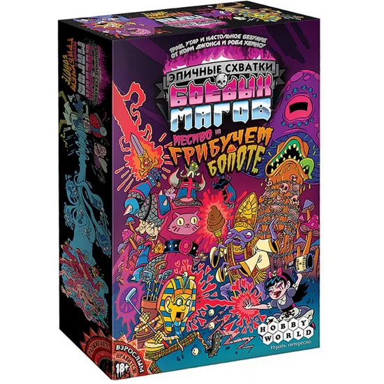 Куда бежать, кого боятся? Месиво на грибучем болоте, можно играть вместе с другими наборами "Эпичных схваток боевых магов"! 8 боевых магов и 128 убийственных заклинаний! Мощные колдунства, вечные сокровища, двузначные приходы и другие нововведения! Награды за выпил — эпичный путь к победе!