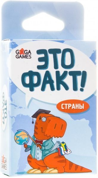 «Это Факт! Страны» — настольная карточная игра в жанре викторины, которая отлично развивает эрудицию, а также познакомит вас с географией и особенностями различных стран. В ней вам придётся сравнивать страны по различным признакам: по площади территории, численности населения, средней температуре воздуха и названию столицы. В весёлой и увлекательной форме вы узнаете множество интересных фактов про государства мира.