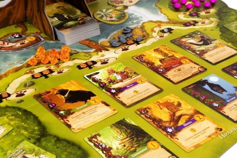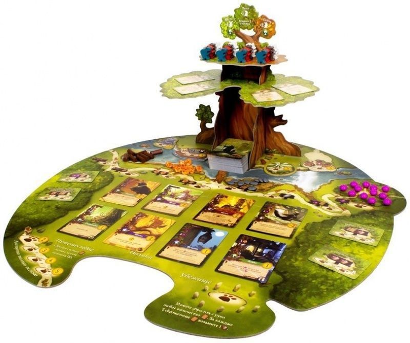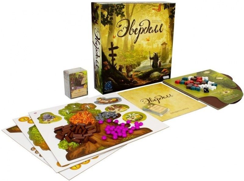 Эверделл – это волшебная настольная игра для 1-4 игроков и само воплощение тепла и уюта. Действие игры происходит в сказочном мире, где животные разговаривают и дружно живут вместе в лесных городах. Прежде всего, игра удивит Вас своим очаровательным дизайном игрового поля и компонентов, в которых используются мягкие и приятные цвета. Во главе игрового поля стоит настоящее дерево, которое нужно будет собрать по инструкции из картонных элементов. Дерево не просто выполняет декоративную функцию – на его ветвях располагаются карты и фигурки.
