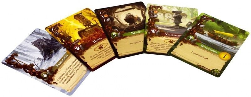105 фишек ресурсов: ягод, веток, смолы и камушков;