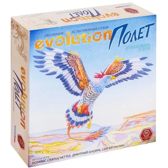 «Полет» — дополнение к настольной игре «Эволюция. Естественный отбор» (Evolution), добавляющее летающих существ в экосистему. Созданные вами виды смогут пикировать на ничего не подозревающую жертву, улетать от хищников и перемещаться на новые территории при истощении запасов пищи!