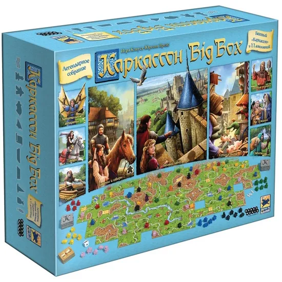 Каркассон: Big Box – это новое издание всем известной стратегии, получившей в 2001 году премию Spiel des Jahres и завоевавшей с тех пор сердца всего настольного сообщества. В большой коробке этого издания вы найдёте базовую игру и целых 11 дополнений, полностью совместимых друг с другом: можно попробовать все по очереди, можно смешивать любимые – и даже играть во все одновременно, если возникнет такое желание.
