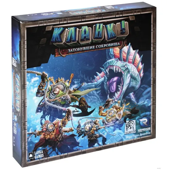 Тайны подводных лабиринтов. «Кланк! Затонувшие сокровища» - это первое большое дополнение для игры «Кланк!». Теперь кладоискатели и авантюристы готовятся покорить затопленные залы давно покинутых сокровищниц. Но чудовище не дремлет, один неосторожный шаг, громкий звук и оно бросится за героями, но ускользнуть от него будет уже сложнее, плавает дракон отлично.