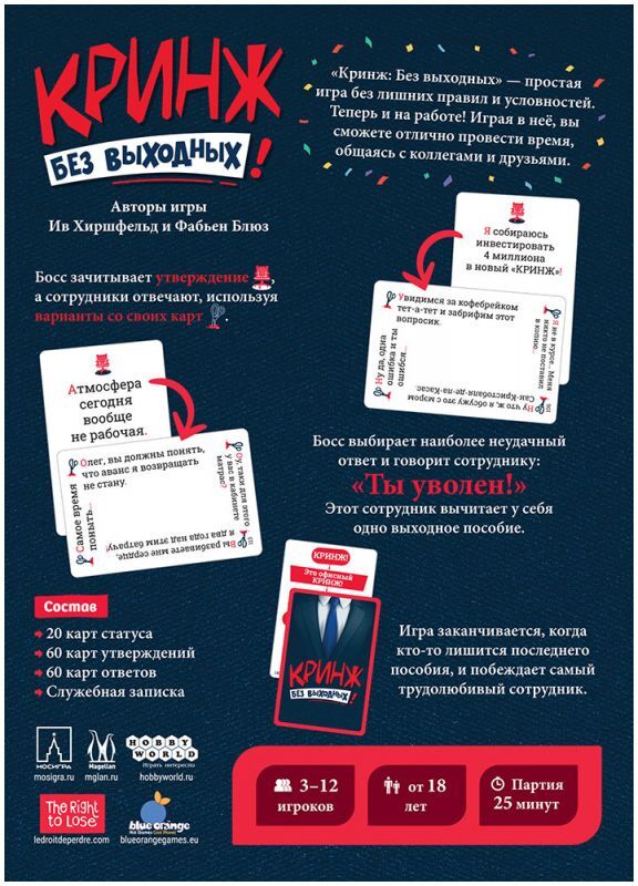 Серия «Кринж» (Shut Up, Boss!) — пример того, как современные настолки всё чаще обращаются к повседневным темам: не к рыцарям и драконам, а к офисной культуре, выгоранию и работе «на износ». Из-за этого многие игроки отмечают, что в «Кринже» смешно ровно потому, что слишком узнаваемо.