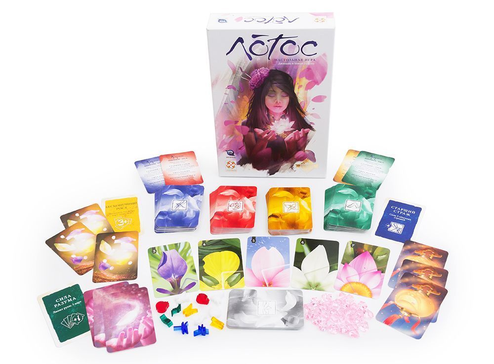 «Лотос» – это невероятно красивая настольная игра для 2-4 игроков, в которой вам предстоит выращивать самые разные цветы – от простых первоцветов до роскошных лотосов. Выкладывайте карты лепестков, завершая чудесные цветы. Мудро используйте своих стражей-насекомых, чтобы заработать победные очки. Выбирайте, когда лучше получить контроль над цветком, а когда – первым сорвать его… Верная тактика принесёт вам большую награду и победу в игре!