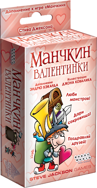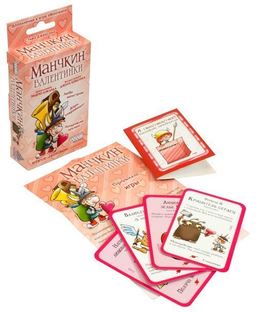 В наборе Валентинки находятся - кто бы мог подумать - складные валентинки. Толку в обчистке подземелья от них абсолютно никакого. Зато с их помощью можно продемонстрировать безграничную манчкинскую любовь и обожание всем получателям!