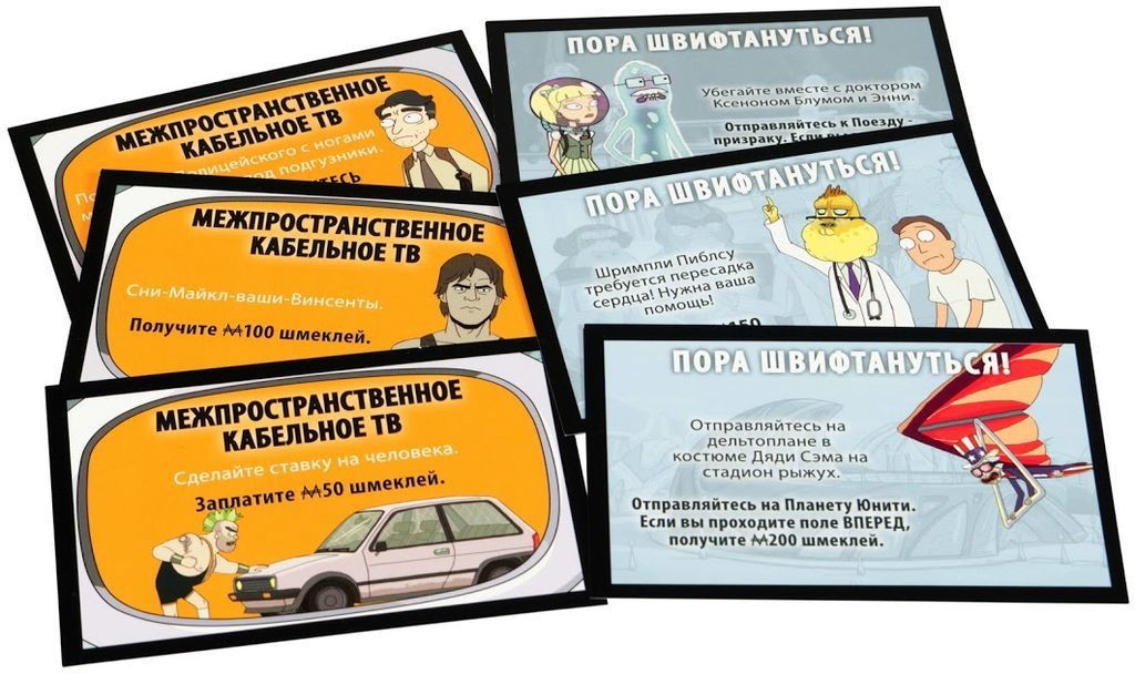 Монополия Рик и Морти – это атмосферно, здорово, угарно. В особых карточках «Пора швифтануться» вы встретите немало знакомых эпизодов из мультсериала, но помните, что этот весьма эксцентричный юмор явно не предназначен для юного возраста.