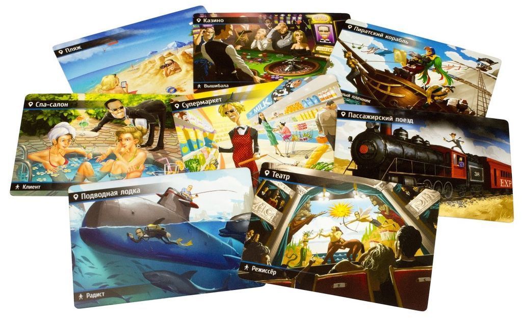 - Можно объединить локации из первой и второй коробок Spyfall и сделать игру еще интереснее.