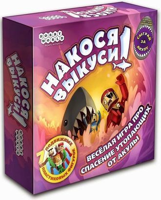 «Накося выкуси» — это быстрая динамичная игра для 2-7 игроков, которая придётся по душе и взрослым и детям. Водный антураж, забавные роботы-пираты и простые правила помогут скоротать время в поездке или разбавить семейный тихий вечер. В коробке вы также найдёте дополнение «Сыграй за акулу», с помощью которого один из игроков может принять сторону зла и стать акулой. Водные просторы ждут вас!