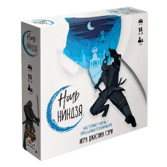 Ночь ниндзя идеально подходит для больших вечеринок, вмещая до одиннадцати игроков. Это очень динамичная и интересная соревновательная игра на социальную дедукцию. Правила очень просты и осваиваются за пять минут, а вот удовольствие, которые вы получите от игры, не забудется ещё долго.