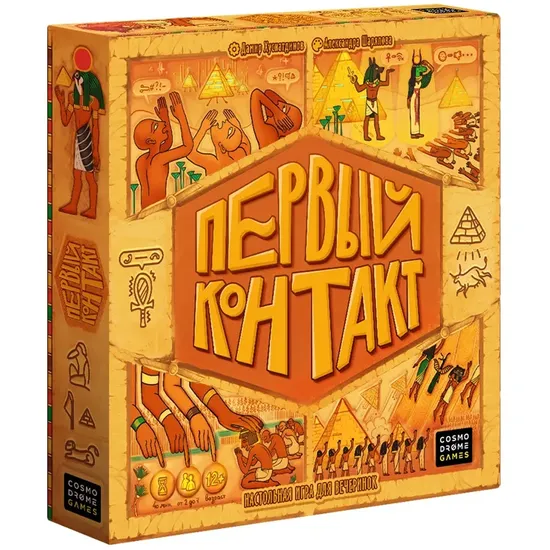 Первый контакт представляет собой невероятно веселый дедуктивный пати-гейм, в котором вам предстоит от лица одной из сторон – египтян или пришельцев, попытаться преодолеть языковой барьер. Игра проходит в несколько раундов, при этом египтяне изо всех сил стараются выучить инопланетный язык, а пришельцы пытаются объяснить землянам, зачем они прилетели. В команде инопланетян побеждает тот, кто сумел лучше всего донести свою мысль, в команде египтян - тот, кто лучше всех ее понял.