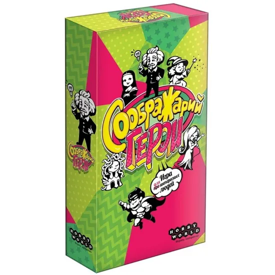 Сможете назвать путешественника на букву "Д"? А пять знаменитых брюнетов или брюнеток? А если учесть, что на всё про всё вам даётся одна минута? Да уж, тут есть над чем задуматься. Настольная игра "Соображарий: Герои" предлагает вам вспомнить различных людей, а также других существ. Это могут быть как знаменитые актёры, музыканты, писатели, поэты, так и вымышленные персонажи (сказочные, мифические, герои книг или фильмов). Кстати, правилами не запрещается называть любого знакомого вам человека, в том числе и игроков за столом, что, согласитесь, добавляет в игру ещё больше веселья.