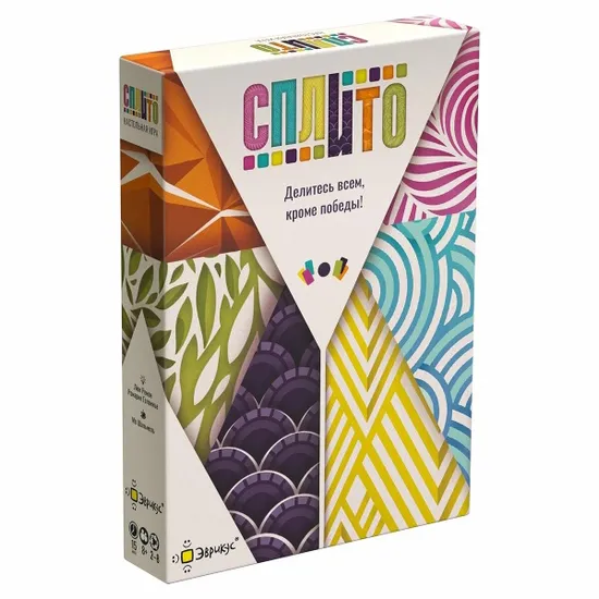 Сплито – быстрая весёлая карточная игра для компании, основанная на механиках драфта и сбора сетов. В этой игре много взаимодействия, ведь у игроков нет своих личных игровых зон, а есть общие с соседом слева и справа. Помогайте друг другу выполнять задания, но рассчитайте всё так, чтобы стать единоличным победителем!