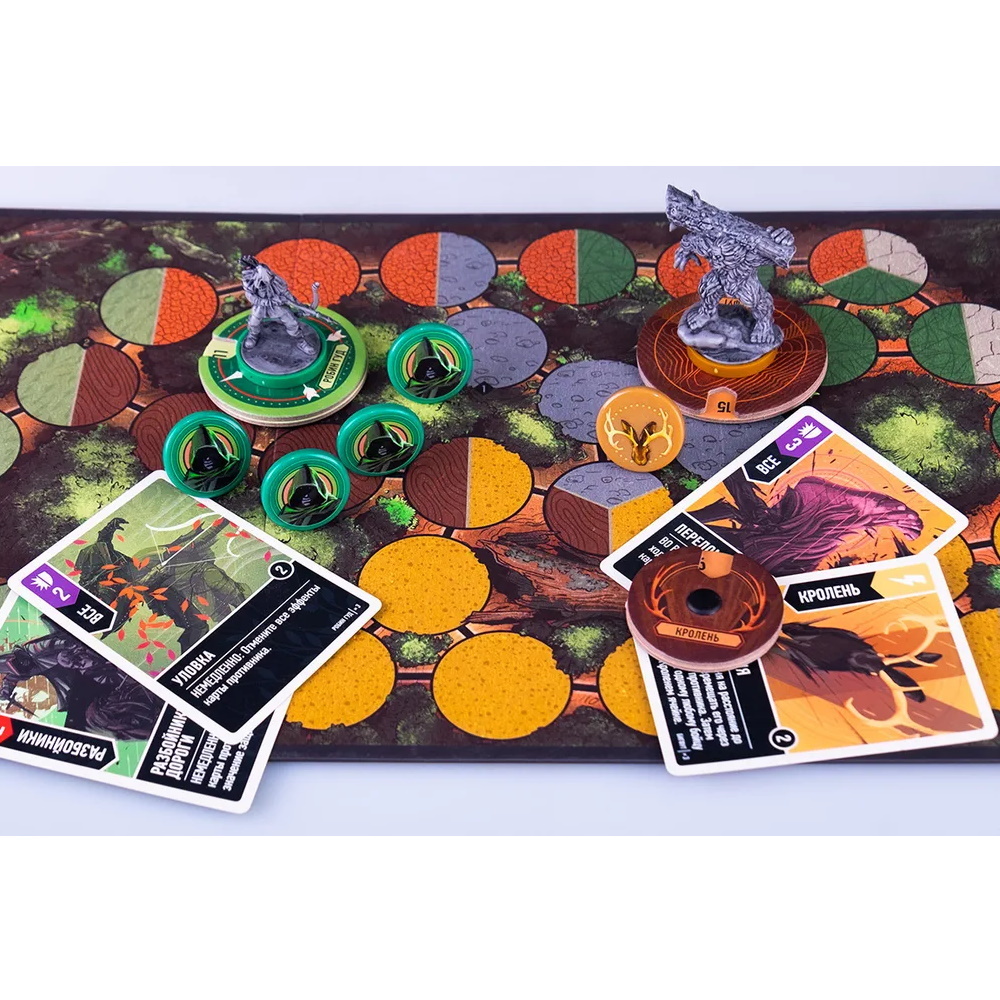 Бигфут – гигантский монстр с небывалой силой, чьи атаки наносят чрезвычайно мощный урон. Он может активно добирать карты, прячась в лесах подальше от противников, чтобы в нужный момент выскочить на них из засады. Загнать его в угол тоже не получится. Бигфут знает каждую тропинку этого леса и может передвигаться скрытно. Так, многие карты позволяют ему перемещаться через клетки противников – мало кто способен на такое!