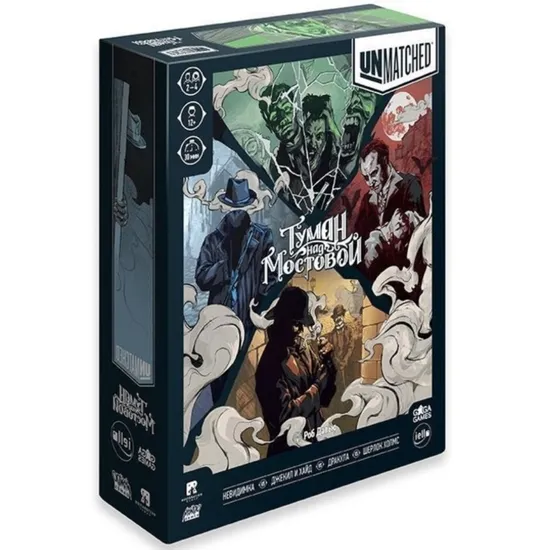 В новой игре серии Unmatched нас переносит в таинственную атмосферу городских легенд и литературных персонажей викторианской Англии. В игре вам повстречаются: Граф Дракула - легендарный румынский вампир, один взгляд которого способен поработить ваш разум, а также три его кровожадные невесты; Доктор Джекилл - гениальный ученый, превращающийся в ужасного и безумного мистера Хайда; Человек-невидимка - ученый, чьим проклятьем и одновременно даром стала абсолютная невидимость; а также несравненный Шерлок Холмс в дуэте с верным помощником доктором Ватсоном - все-таки, кто-то должен приглядывать за всеми этими созданиями.