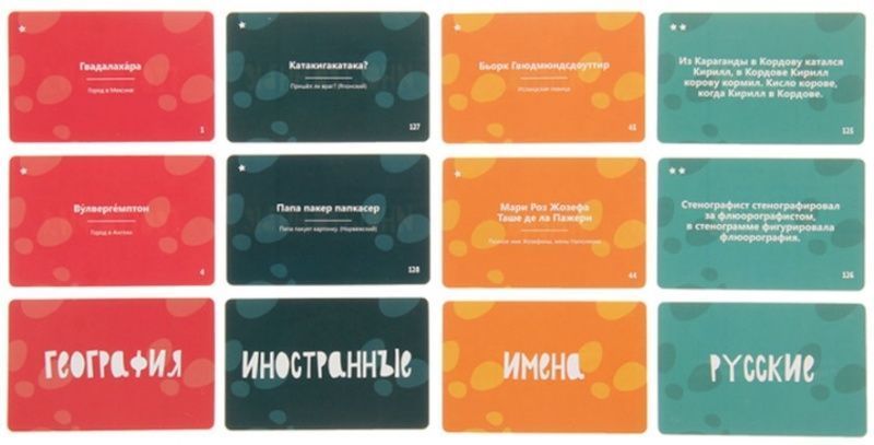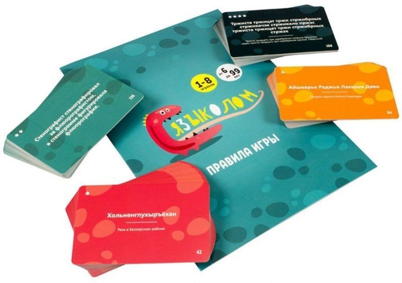 Языколом - это несколько простых и веселых игр на скорость, артикуляцию и память, собранных в одной коробке. Внутри вас ждут карточки с забавными скороговорками, необычными именами и географическими названиями.