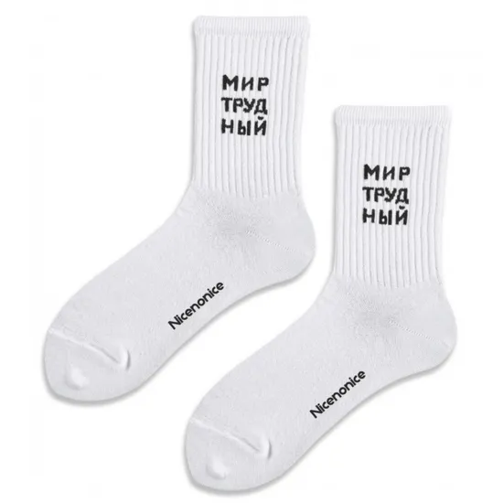 Носки Nicenonice Classic Мир Трудный (Белый, 41-45)