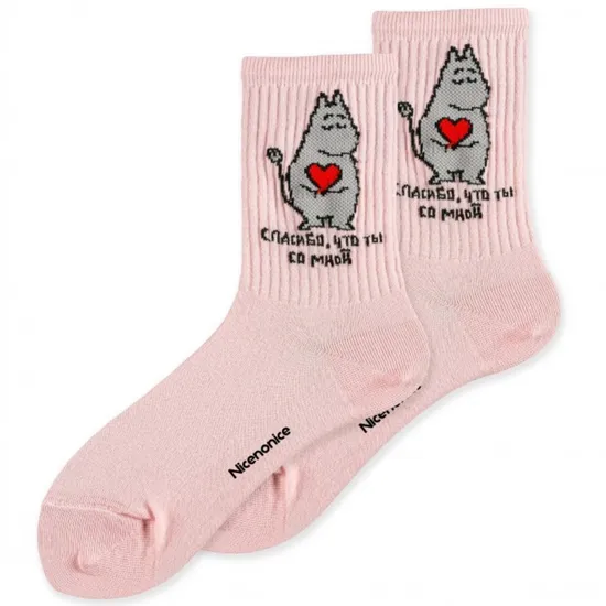 Носки Nicenonice Classic Спасибо, что ты со мной - Муми-тролль (Розовый, 35-40)