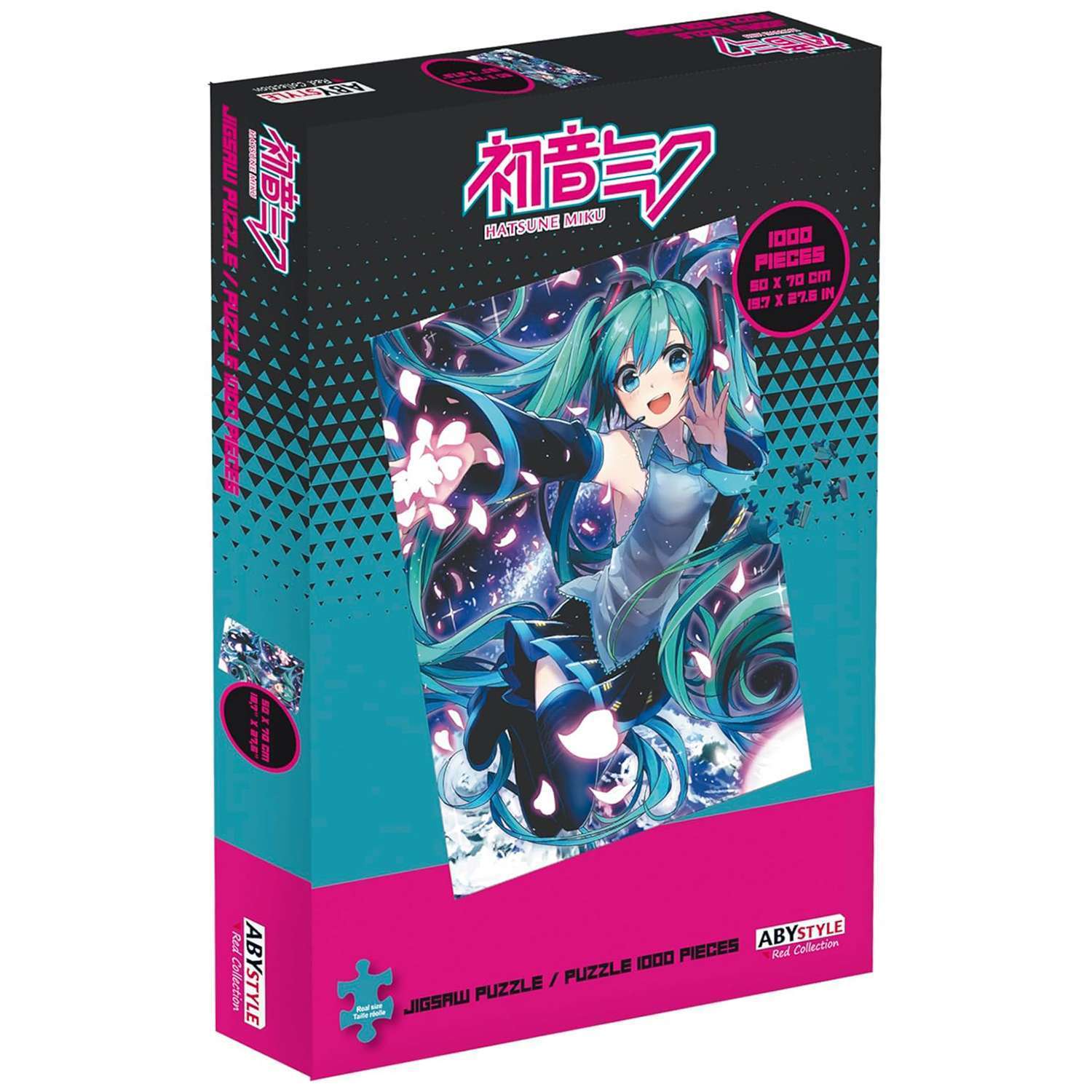 Пазл Hatsune Miku на 1000 элементов раскрывает стильный арт с виртуальной японской певицей, созданной на базе технологии Vocaloid. После сборки получится крупная картинка формата 50 × 70 см — можно оформить в рамку и превратить в декор гик-комнаты.