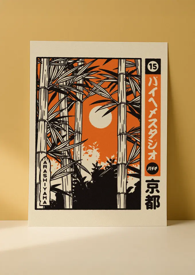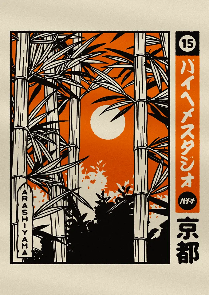 Arashiyama Poster — бамбуковый лес Киото в графическом стиле