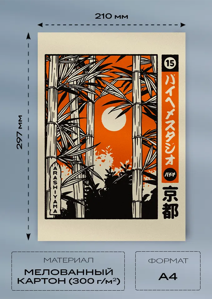 Постер вдохновлён легендарным районом Арашияма, который известен своим живописным бамбуковым лесом.