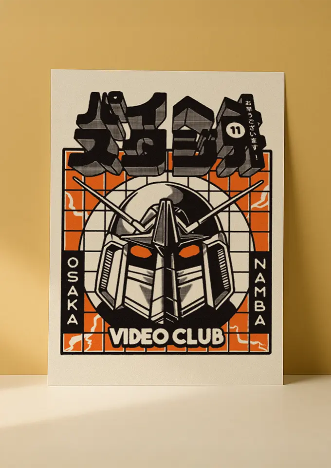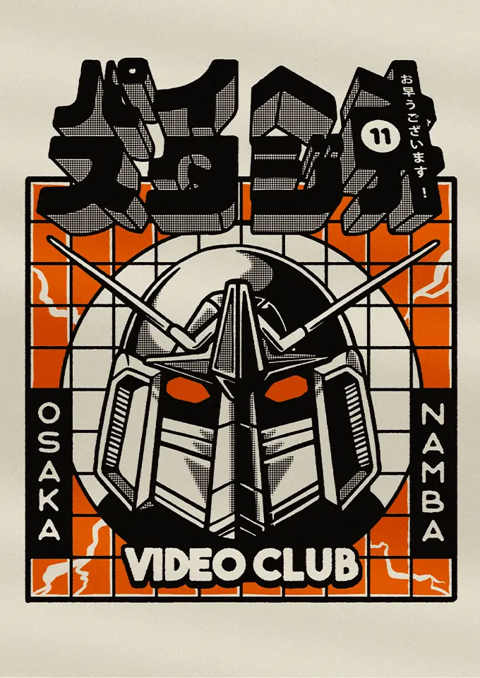 • Сюжет: маска робота на фоне сетки и японских символов, надписи OSAKA / NAMBA