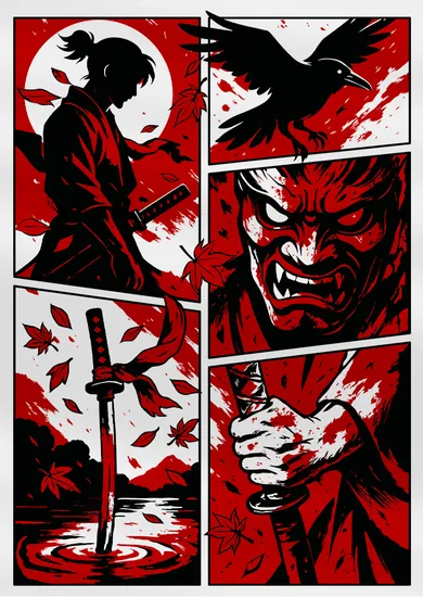 • Стиль: японская графика, минимализм, комикс-композиция