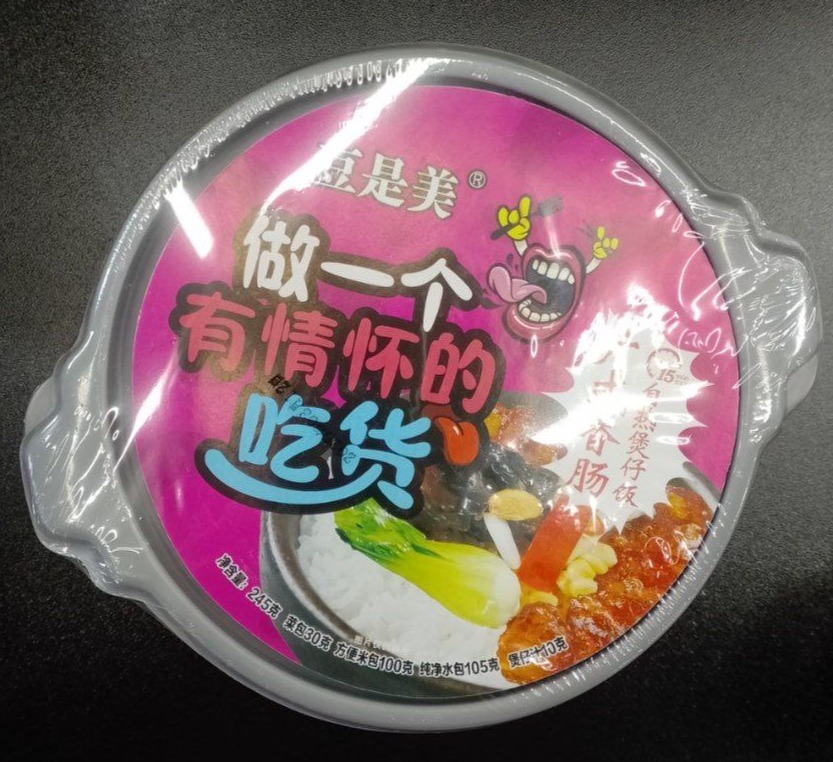 После активации нагревательного пакета выделяется горячий пар, который разогревает воду и создаёт эффект “мини-пароварки”. Рис получается рассыпчатым, соус прогревается, а колбаски раскрывают свой сладко-копчёный аромат.