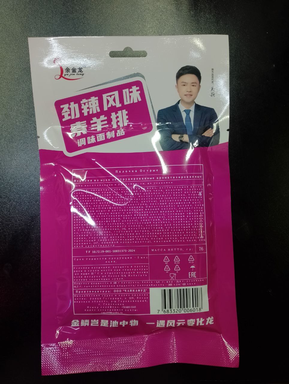 Пшеничная мука, соевый белок, растительное масло, вода, соевый соус, сахар, соль, смесь специй (чеснок, перец чили, пряные травы), усилители вкуса, ароматизатор «бараньи ребрышки», регуляторы кислотности.
