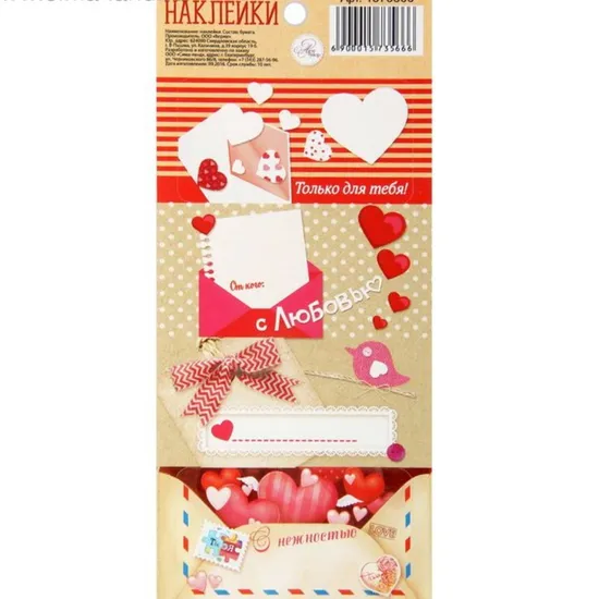 Стикеры на подарки "Любовное письмо" 7,5 x17 см 1573566
