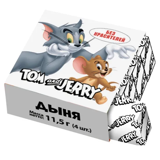 Герои популярного сериала Tom and Jerry и одноименного комикса теперь на обороте упаковки новых конфет Tom and Jerry Дыня.Веселая компания кот Tom и мышонок Jerry угощают! Конфеты имеют жидкий центр и вкус постепенно раскрывается по-новому.