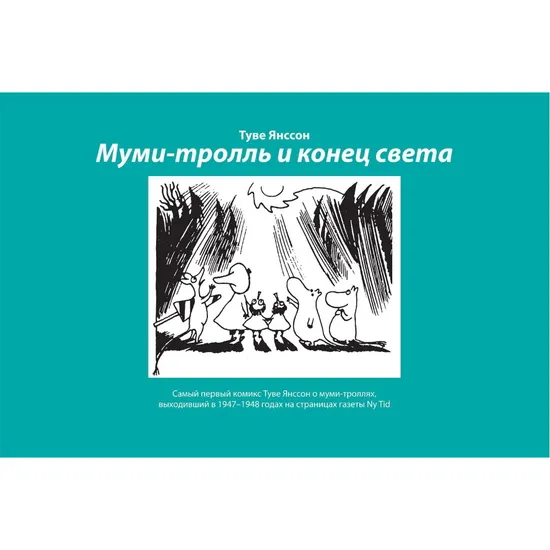 История в картинках «Муми-тролль и конец света» публиковалась в газете Ny Tid в 1947–1948 годах и в оригинальной форме излагает сюжет о космической угрозе миру и чудесном его спасении.