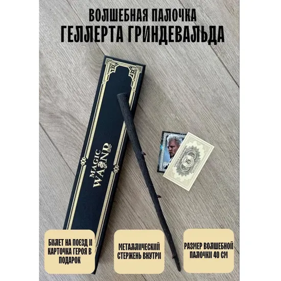 Волшебная палочка Геллерта Грин-де-Вальда в коробке + Карточка персонажа + Билет на Платформу 9 и 3/4