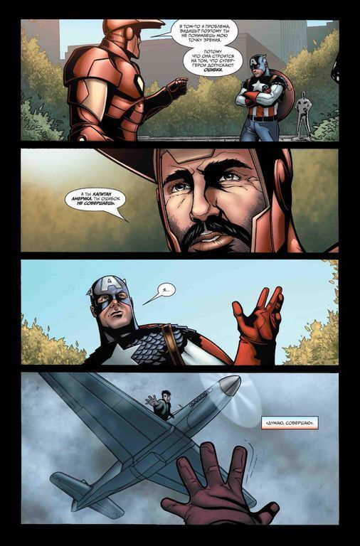 Так же: посреди Гражданской Войны Капитан Америка и Железный Человек втайне встречаются в последний раз, чтобы выяснить, возможно ли всё разрешить и предотвратить новые трагедии. Как эти два человека, бывшие близкими друзьями и верными товарищами, оказались во главе противоборствующих армий в конфликте, разделившем вселенную Marvel?