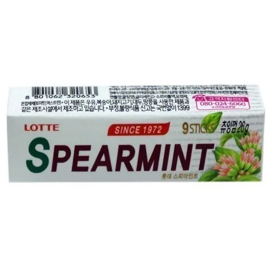 Качественная корейская жевательная резинка с отличными показателями эластичности. Имеет вкус леденящей мятной свежести и превосходно освежает дыхание. Жевательная резинка Spearmint Lotte поможет очистить зубы и ротовую полость после приема пищи и позволит предотвратить появление кариеса.