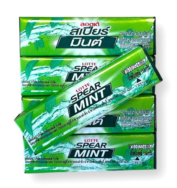 Жевательная резинка LOTTE Spearmint из Таиланда — классика вкуса и чистоты.